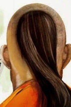 The earliest work of substantial hadith commentary is that of the Central Asian mystic al-Hakim al-Tirmidhi (d. around 295 A.H.). He explained in his book Nawadir al-Usul that the qazaʿ refers to what is known as the Roman Tonsure, first adopted by Roman monks around the 5th Christian century as a symbol of abandonment of the world, and which later became a compulsory act of initiation into the Catholic clergy, until the Pope abolished this practice in 1972. It looks like this: